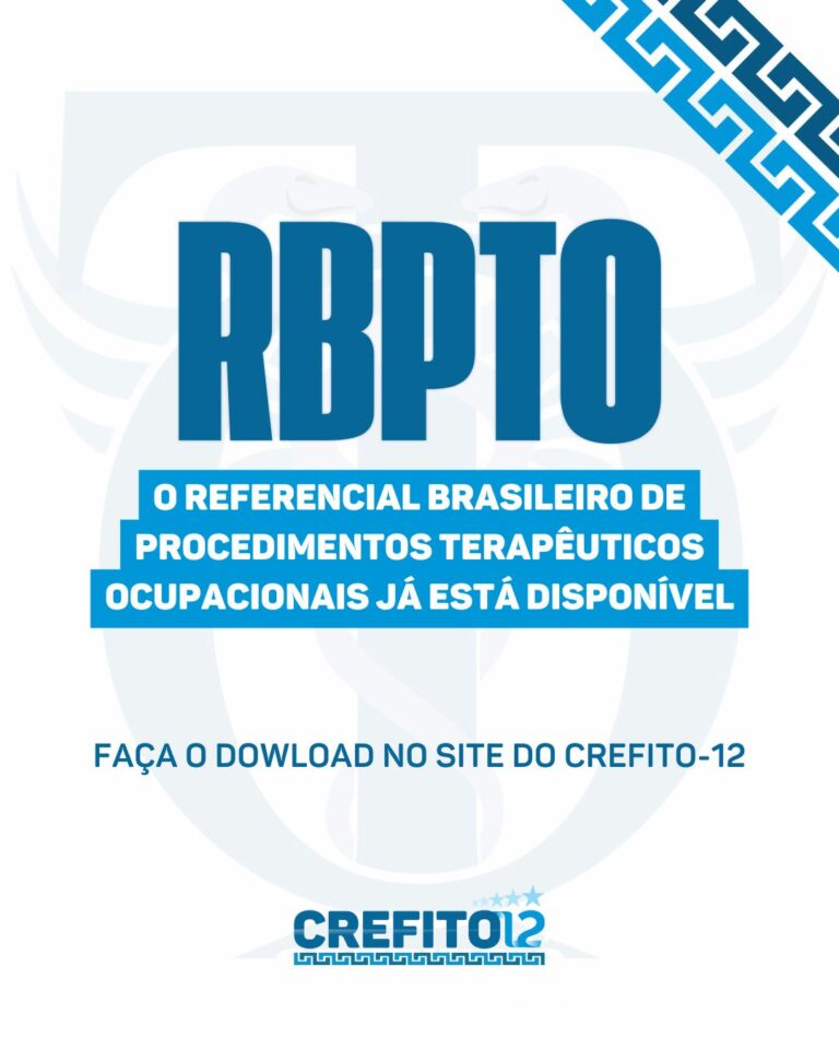 O Conselho Federal de Fisioterapia e Terapia Ocupacional (COFFITO) publicou, na edição desta sexta-feira (15/8) do Diário Oficial da União (DOU), o Referencial Brasileiro de Procedimentos Terapêuticos Ocupacionais (RBPTO), por meio da Resolução nº 622/2025. Após análise dos Conselhos Regionais, das Associações Nacionais de Terapia Ocupacional e da aprovação em Plenário, o RBPTO já está acessível!