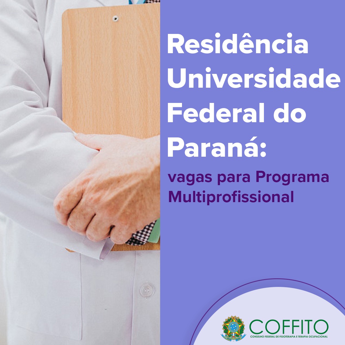 Abertas as inscrições da Residência da Universidade Federal do Paraná – UFPR destinado à contratação de profissionais para o serviço público. As inscrições serão realizadas do dia 28/08/2019 até o dia 27/09/2019, exclusivamente pela internet, no endereço eletrônico da universidade. Há vagas para Fisioterapeutas e Terapeutas Ocupacionais.